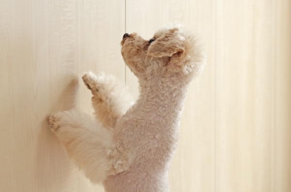 - クロス壁をプリント合板で腰壁調にイメージチェンジすることでペットや掃除機等のキズ対策にもなります。